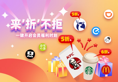 肯德基5折、星巴克6折、瑞幸咖啡5折、滴滴打車8折……超多會(huì)員專享折扣,開啟會(huì)員福利時(shí)刻!